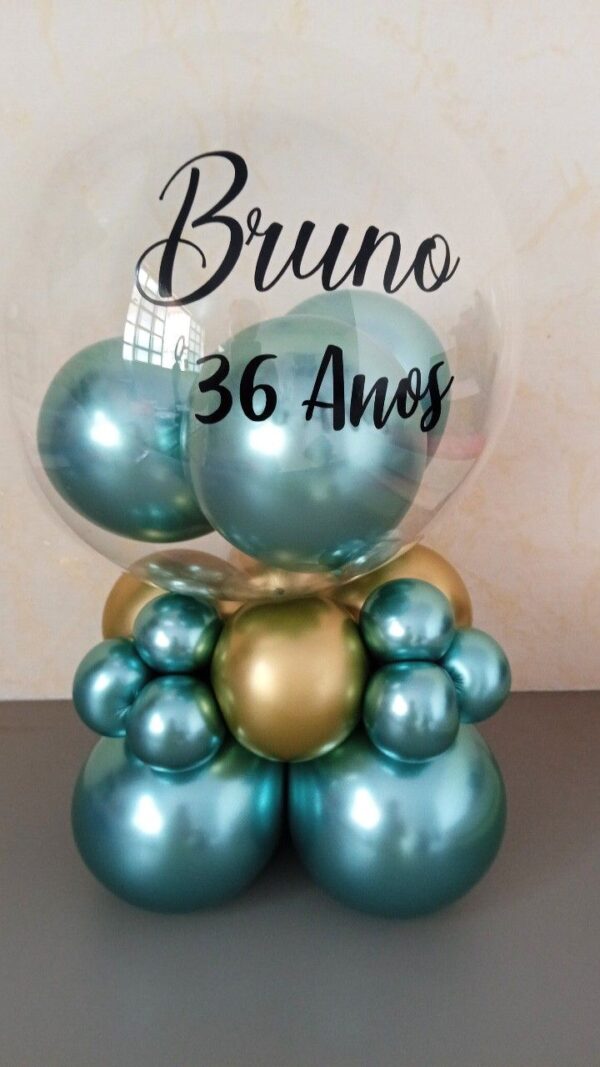 1 Bobo balloon filled with 4 golden balloons & 4 blue balloons
