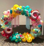 Arch of 230 balloons of yellow, blue, pink, green, d.pink)