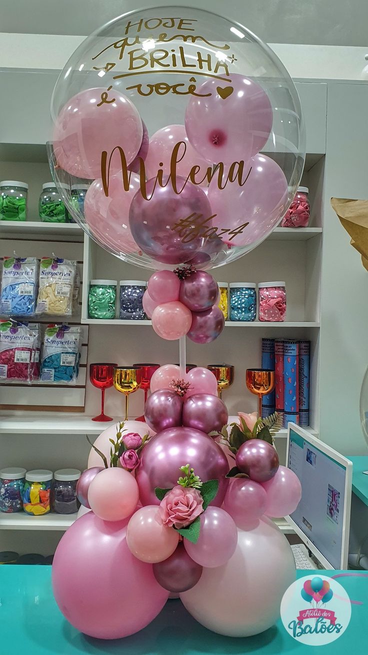 1 Bobo balloon filled with 5 pink latex balloons & 2 pink shining balloons