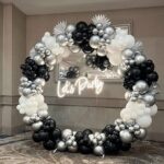 200 Balloons arch of silver, gold & black